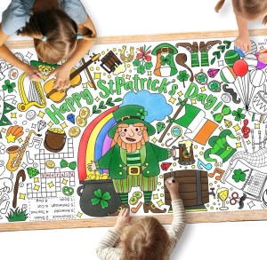 This giant St. Patrick’s Day Coloring Poster is the perfect holiday project for festive, screen-free fun. It was an instant hit with the children in my care and is great activity for a St. Patrick’s Day party.