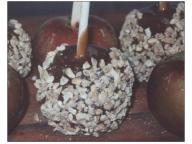 5. Roll the apples in candy or nut coating before the candy shell hardens.