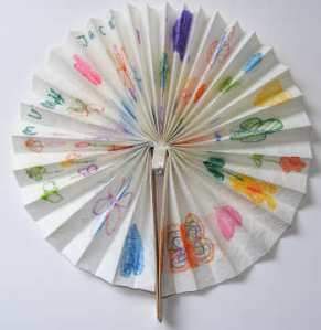 4. Once dry the children can pull the Popsicles sticks together and tape them in place to make the fan.