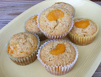 6. Fill 3/4 full with batter then top muffin with one Mandarin orange.