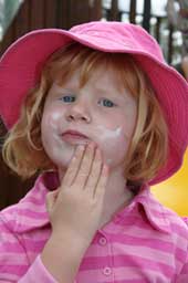 Scientists who have researched a key sunscreen chemical in this sunblock, the potential hormone disruptor oxybenzone, advise the opposite: “It would be prudent not to apply oxybenzone to large surface areas of skin for extended and repeated periods of time, unless no alternative protection is available. There may be an additional concern for young children who have less well developed processes of elimination, and have a larger surface area per body weight than adults, with respect to systemic availability of a topically applied dose” (Hayden 1997).