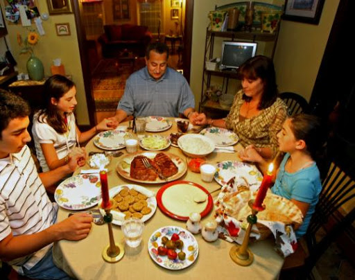Photo of the Al-Zaim family gathered for dinner to break the Ramadan fast. Adult Muslims are required to fast during daylight hours this month as a form of worship. (Justine Hunt/Globe Staff Boston.com)