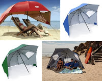 I have read on the Internet that some users complain that on very windy days the plastic mounts are fragile and might break. But, I found it much easier to use and sturdier in windy conditions than any other beach umbrella or tent I’ve used before. In fact, I have found that there is no need to use stakes unless it is very windy. I always have had trouble getting other types of beach umbrellas to stay put when the wind kicks up. Since the Sport-Brella Umbrellasits on the ground, and can be staked down for additional stability and I don’t have to keep adjusting it, like other brands of beach umbrellas and tents.