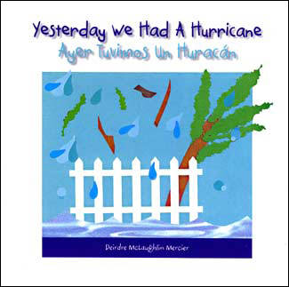 Yesterday We Had A Hurricane, (appropriate for three- to six-year olds) is a bilingual picture book in English and Spanish, provides an introduction to the effects of a hurricane. The author, Deidre McLaughlin Mercier, a teacher and counselor, has done an excellent job of presenting information in an age appropriate manner for children three- to six-years-old. Narrated by a child living in Florida, the book is illustrated with wonderful bright fabric and paper collages that effectively illustrate the damage a hurricane can do in a way that will not frighten small children. With humor and emotion, the child describes the loud wind, trees falling, the driving rain, and the good and bad aspects of being without electricity. Yesterday We Had A Hurricane is a good book for young children. Review by Elizabeth Kennedy.