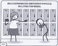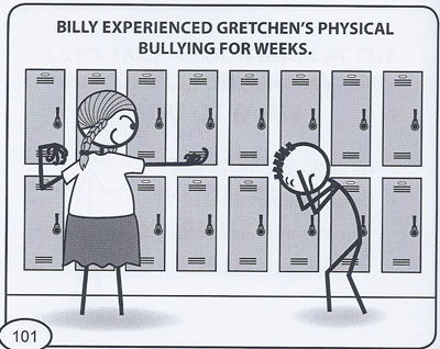 After [the] introductory messages to those being bullied and to bullies, and an author’s note, the story begins. Presented in comic book form, the story centers on two popular fifth graders, friends Billy and Beth, who are getting ready to start middle school. They have to deal with the transition to a new school and to new people, some of whom are bullies.