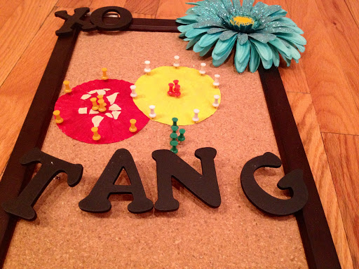 2. Once the baking cups dry, have the kids pin them up to the cork board! To create a flower design, be sure to include the stigma and a stem if you can wrangle up green push pins.