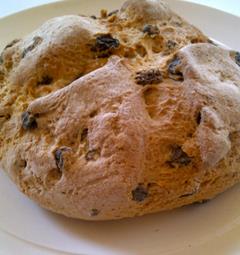 Soda bread is a soft textured cake like bread that rises due to the reaction of the acid of  buttermilk and baking soda. If you don’t have buttermilk on hand, simply add vinegar to milk to create the necessary ingredient for the recipe. Although the Irish didn’t invent soda bread they are often identified with the yummy treat. I found this recipe in my employer’s recipe box. The three kids and I quickly devoured the Irish Soda Bread it in one sitting.