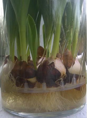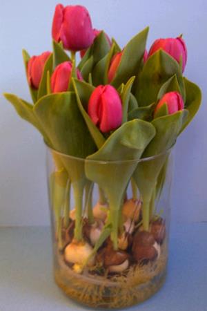 Breathe a little fresh color into the home you work in by doing this simple science project without the mess of potting soil or dirt. Bulbs generally contain all the nutrients required for blooming, although they still need water to grow blooms. Bulbs such as tulips, daffodils, amaryllis, and lilies grow without soil and last longer than cut flowers. A clear glass vase, filled with pebbles, and a little water is all you need. You and the kids will love watching the roots grow from the bulbs, then the green sprouts, and finally bloom.