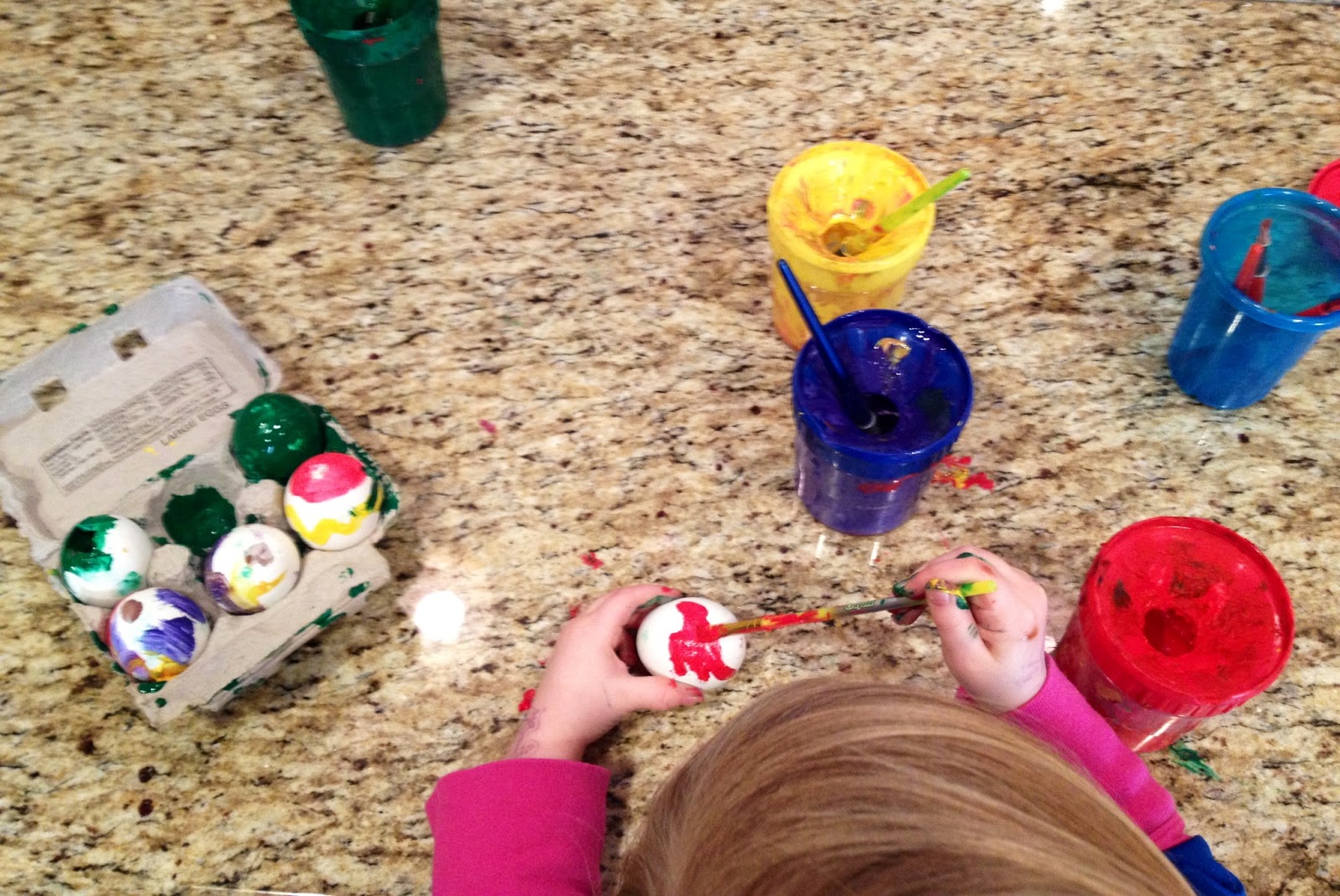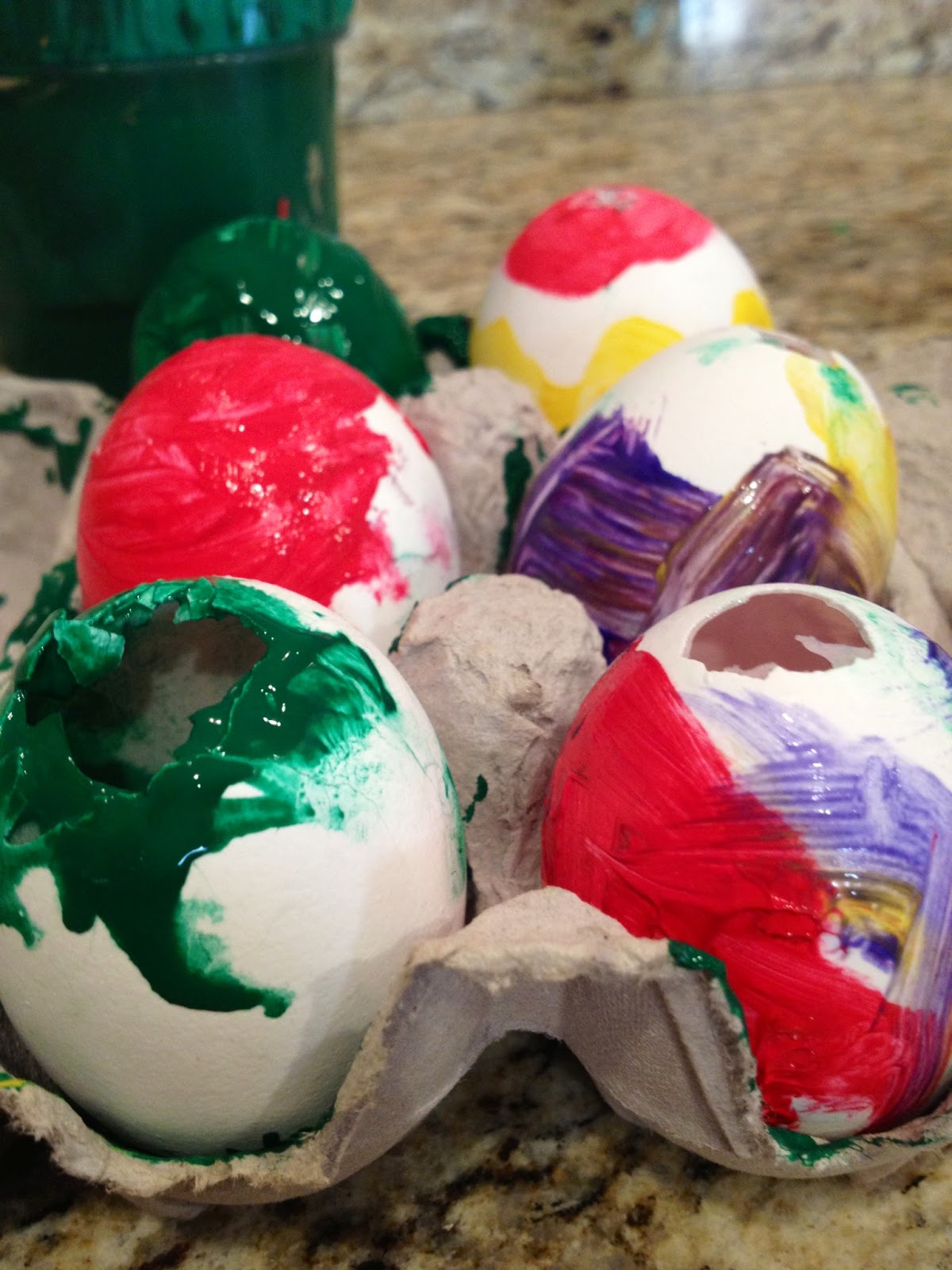 4. Now just let dry and paint! Once painted the eggs become a lot less fragile, so you can stop holding your breath if you are soon this with youngsters.