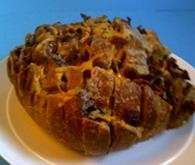 4. Wrap in foil the entire loaf in foil and place on a baking sheet. Bake at 350 degrees for 15 minutes.