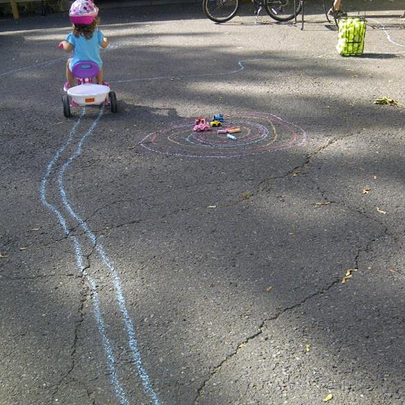 Use cones and draw an obstacle course using sidewalk chalk that tricycle riders can weave through.