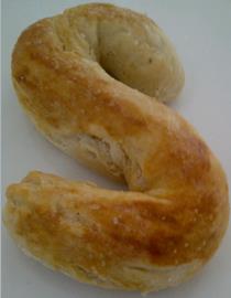 3. Shape each rope into a pretzel and dip into the baking solution. Sprinkle pretzels with coarse salt or coarse sugar. (We made some of the pretzels into shapes of letters. See the “S” pretzel above).