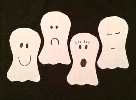 3. Draw happy, sad, scared, surprised and sleepy faces on the ghosts.