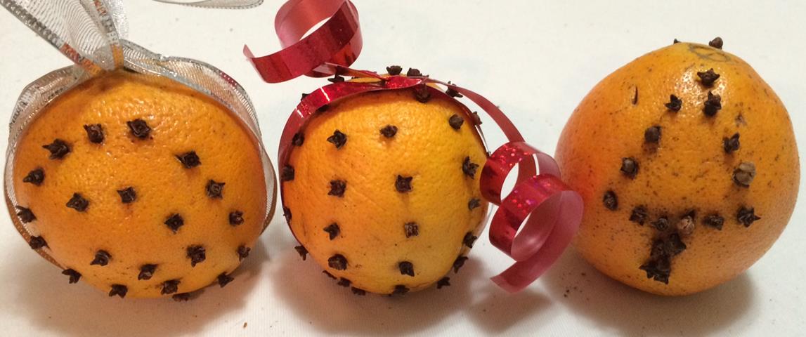 1. Stick a pushpin into the fruit, remove and insert a clove.