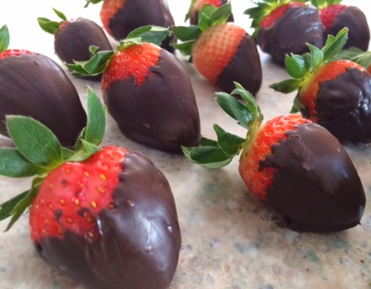 When I think of Valentine’s Day I always think of chocolate covered strawberries. There are few treats as delicious as chocolate covered fruits. I found Dolci Frutta Hard Chocolate Shell at the grocery store in the produce aisle and the kids and I made these chocolate covered strawberries in less than ten-minutes. I store them in an air tight container in the fridge so the chocolate doesn’t melt. Here’s what to do: