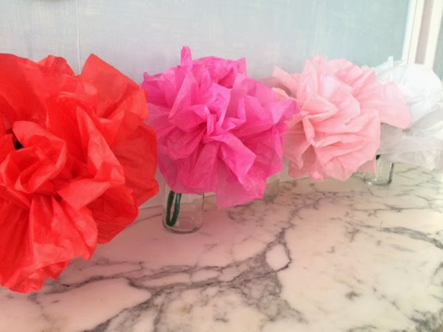 1. Several sheets of approximately 7-inch by 10-inch white and colored tissue paper (We used red, hot pink, light pink, and white for Valentine’s Day colors)