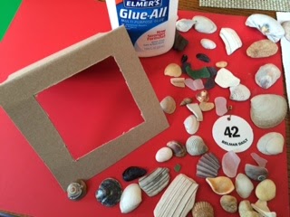 4. Pour plenty of white glue into a disposable cup. Help the kids use paint brushes to slather on heaps of glue onto the frame and shells when pasting the sea side treasures to the frame. The glue will dry clear so use enough to keep the seashore prizes secure.
