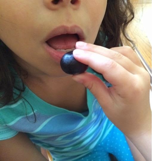 A fun way to get kids to eat healthy foods is to have a taste test. Use at least two types of food that are similar but slightly different tasting such as: cantaloupe and honeydew melon, red and green apples, or broccoli and cauliflower. We used three different colored types of grapes for our recent taste test.