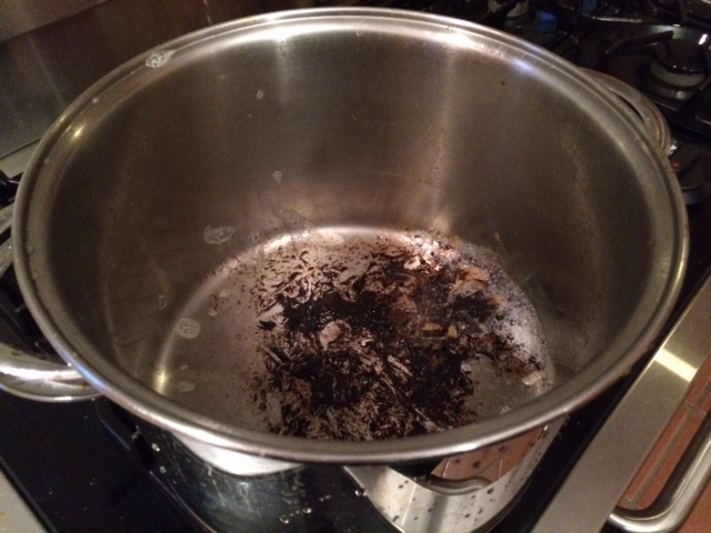 So the next time you or your employers burn food to the bottom of a pot or pan simply boil the persistent mess on the stove for about five minutes to quickly have a shiny clean pot or pan.