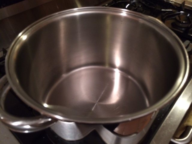 Simply add a drop of detergent to hot water and boil the pot on the stove to loosen the ornery burned-on mess. But, be sure to only add enough water to cover the tough food stain because as the water boils the bubbles will quickly rise in the pot and can bubble over.