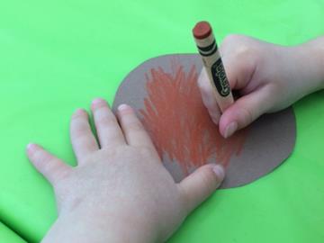 2. Cut out the cardboard circle. Let kids color in part of the brown body with the red crayon to make a red breast on the red robin. Fold circle in half.