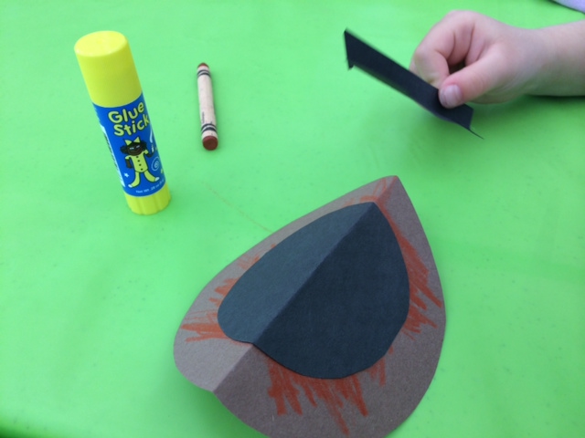 3. Cut an circle out of the black paper. Fold the circle in half and glue over the brown circle that is the body of the bird.