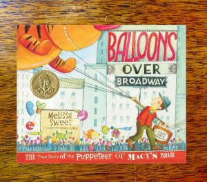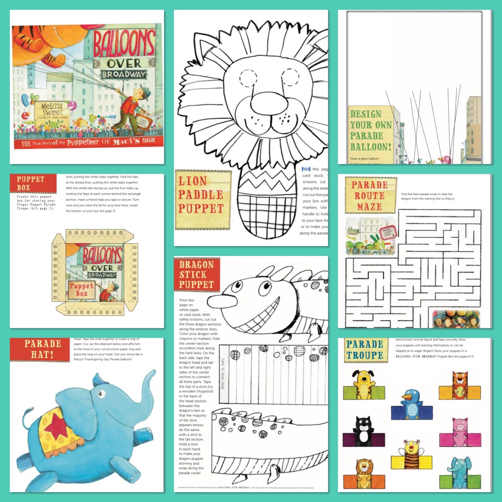 The kids I care for are going to the Macy’s Thanksgiving Parade on Thanksgiving morning so I borrowed “Balloons over Broadway” by Melissa Sweet from the library to prepare them for the fun and festivities. But if your charges aren’t goingto the parade they will still love watching the parade on television and reading this book. Perhaps the best part is there a free activitiy kit online to use with kids after reading it.