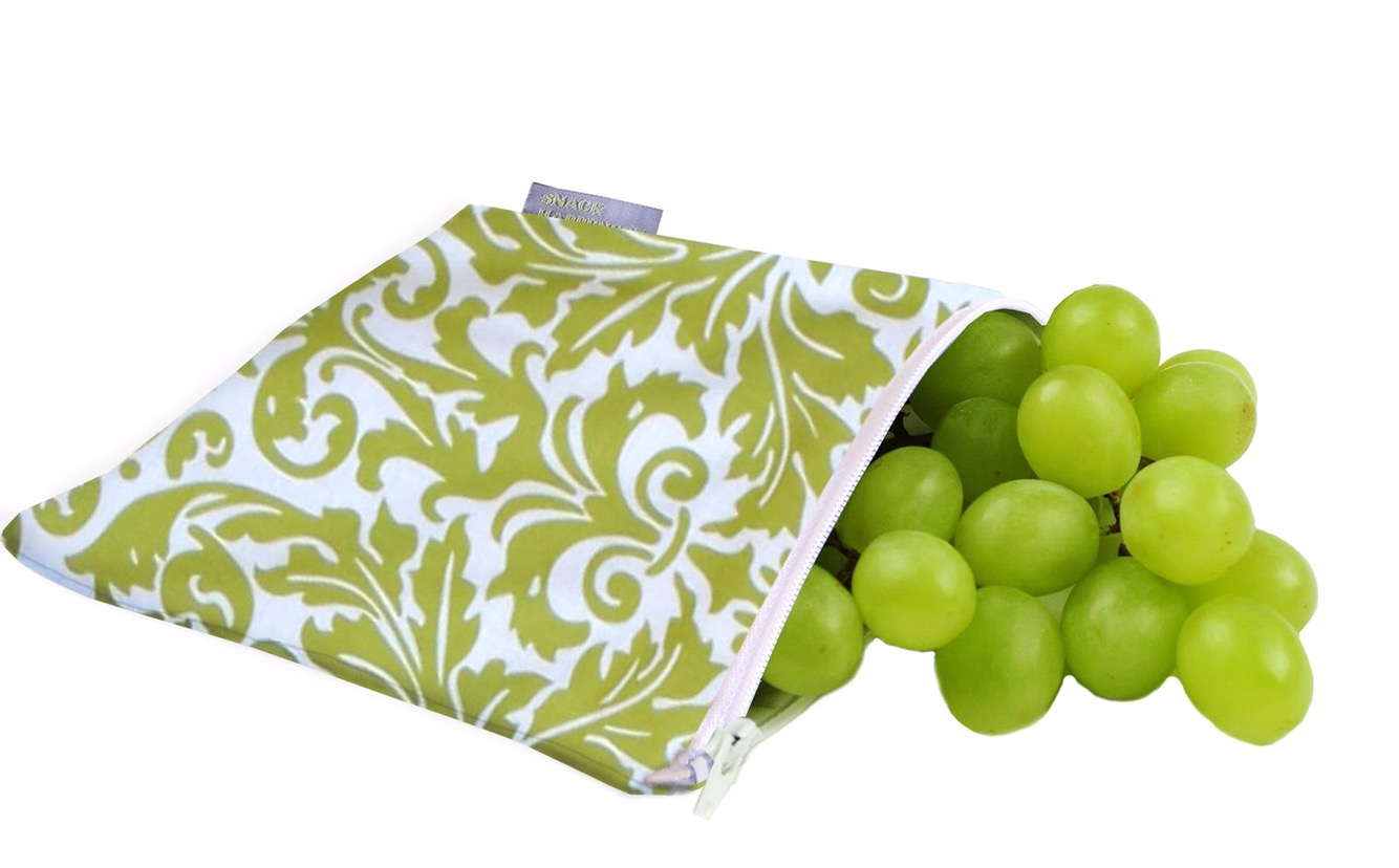 Itzy Ritzy Snack Happen are great for storing and carrying snacks. Each bag comes in a cute pattern and has a 100% cotton exterior. The lining is waterproof, FDA approved and BPA, lead and PVC-free. A zipper closure keeps contents in place while on-the-go. They are machine washable and just line dry.
