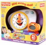 The Fisher Price Fun 2 Learn clock helps children tell time on both analog and digital clocks. This clock is best suited for young toddlers and it’s construction will handle their rough usage and play. The Fisher Price Fun 2 Learn Clock makes learning fun and easy with fun childlike voices that hold a child’s attention. The Fisher Price Fun 2 Learn clock teaches a child how to tell time on both the hour and half hour.