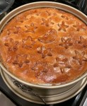 This is my favorite recipe from my Nanny Kids’ Grandmother’s cookbook. The inside of the cake is more like a pie than a cake, but it isn’t syrupy or sticky like a pie filling. The cake doesn’t require a top crust but if you have extra dough just roll it out and use cookie cutters to cut out stars and a moon to represent a Christmas holy night. The directions in this recipe are very casual and not precise but it always tastes great nonetheless. My Mom Boss made this wonderful dessert — including the stars and moon.