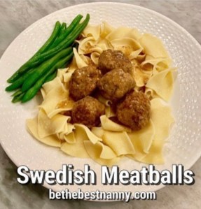 It is winter here in New Jersey and my Nanny Family is craving some warm comfort food. Pasta is always a comfort food for the little ones and they absolutely love this Swedish meatball recipe we found on the epicurious web site. My Nanny Kids love Swedish meatballs served over wide egg noodles with cooked green beans or carrots on the side.