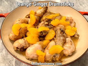 My Nanny Kids love chicken drumsticks and mandarin oranges so I adapted a recipe I found in Eating Well magazine for chicken thighs that’s not on their web site. Searing the chicken before roasting it at a super high heat ensures a super-crispy skin.