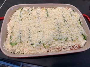 Many people are following low carb diets and enjoy zucchini lasagna. Zucchini has a lot of water in it so making zucchini lasagna is a longer process than making lasagna with noodles made with wheat flour. Zucchini lasagna doesn’t taste like wheat noodle lasagna. But it’s delicious. Grilling works best to remove the water from the zucchini. But as an alternative to grilling, you can bake the zucchini slices in a 500F oven until golden, about 5 minutes on each side.