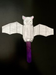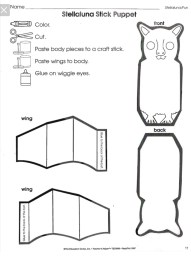 After reading “Stellaluna” make a Bat Stick Puppet. I can’t find the original link to the puppet craft so I just printed the photo included below.