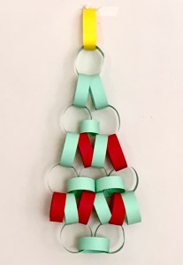 Making paper chains is one of the easiest decorations to make with children for the Christmas season. I found this paper chain Christmas tree craft on the internet at makesandtakes.com. You can help the kids tape or staple paper strips around one another in the form of a paper chain Christmas tree. I included instructions below but the easiest way to see how to make the tree is to simply look at the photo to see to arrange the strips of paper.