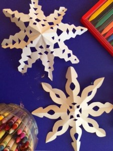 Don’t forget to read children’s books about snow and snowflakes with the kids before and after making paper snowflakes such as:”All the Little Snowflakes,” “The Story of Snow,” “Curious About Snow,” “Snowflakes Fall,”The Snowy Day,” and “Charlie and Lola: Snow is My Favorite and My Best.”