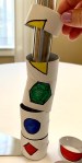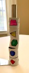 4. Have kids match the colored shapes by putting them on a paper towel holder.