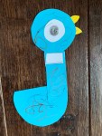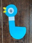 3. Cut out a blue circle for the head of the pigeon. Cut out a larger half of a circle for Pigeon’s body. Cut out a rectangle for Pigeon’s neck. (See photos above for reference).