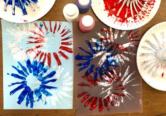 Fourth of July means fireworks in America. Read “The Night Before the Fourth of July” by Amy Wummer then have your Nanny Kids make painted fireworks. To help keep the colors separated we made one toilet paper roll for each color of paint, (red, white, and blue). This craft is great because it is simple and even little kids can enjoy it. But, it is messy so protect their work surface.