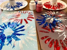 Fourth of July means fireworks in America. Read “The Night Before the Fourth of July” by Amy Wummer then have your Nanny Kids make painted fireworks. To help keep the colors separated we made one toilet paper roll for each color of paint, (red, white, and blue). This craft is great because it is simple and even little kids can enjoy it. But, it is messy so protect their work surface.