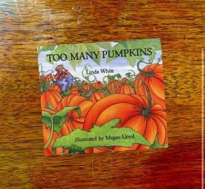 It’s pumpkin season! I used an orange marker to make dashes on orange paper for the kids to practice using their scissor skills. Then, we made these little pumpkins with the orange strips of paper. Be sure to read “Too Many Pumpkins” by Linda White with the children while they make these pumpkins.
