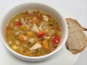 6. Remove the chicken pieces from the soup and shred with two forks.