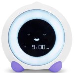 The Mella Trainer Alarm Clock also features three sleep sound options and five night light colors to soothe children to sleep. MELLA also features three alarm sounds and both an alarm and silent countdown for timed activities for older children.