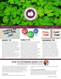 Click here to check out the March 2022 US Nanny Association Newsletter. See what’s new in the digital library, new nanny credential courses available, and how to determine nanny pay rates.