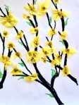 It’s spring and the children I care for have enjoyed finding the new blossoms of yellow forsythia, pink cherry trees, and white apricot trees. Here are some easy art projects for the children to make their own spring blossoms with tissue paper and popcorn. Click the links to see how to make the projects.