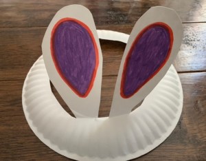 1. Use a pencil to draw bunny ears in center of paper plate. Although my Nanny Kid used her own design you can help younger children with drawing the ears.