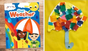 I love touch and feel books because engage young readers with in the books. After reading this fun book Our Weather – Touch and Feel Board Book with toddlers and preschoolers, let them make umbrellas with colorful tissue paper.