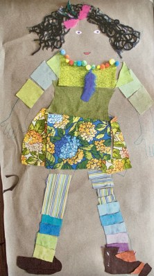 3. Provide all of the decorating materials for the children to use to decorate their hair and clothing. Some children will want to fill in the body by layering materials while others will cut materials to fit the contours.