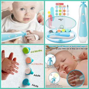 The FANSIDI Electric Nail File is made of high-graded ABS, BPA Free, Phthalate Free, Latex Free, Lead Free. The ergonomic shape and reasonable size allow caregivers to safely trim toenails and fingernails of babies. The electirc baby nail trimmer file is equipped with a whisper quiet motor, works only in 35dB noise, never waking up a sleeping baby.