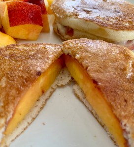 4. Serve with fresh sliced peaches and powdered sugar and/or maple syrup.